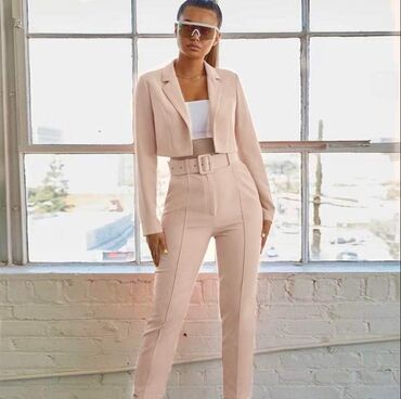 Ženski komplet – džemper i pantalone - Model: dvoslojni komplet sa pletenim „kabel“ uzorkom - Gornji deo: džemper sa polurol-kragnom, duži rukavi, ravni kroj - Donji deo: visok struk sa elastičnim...