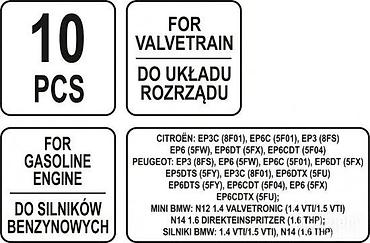 - Mini/BMW: N12 1.4 Valvetronic (1.4 VTI/1.5 VTI), N14 1.6 DirektEinspritzer (1.6 THP), N14 1.4 VTI/1.5 VTI, N14 (1.6 THP)