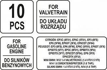 Komplet alata za blokadu i podešavanje razvodnog mehanizma (valvetrain) – 10 delova, za benzinske motore.