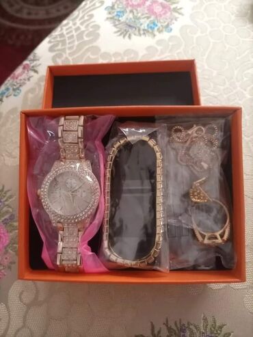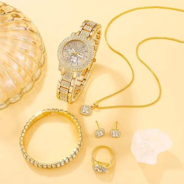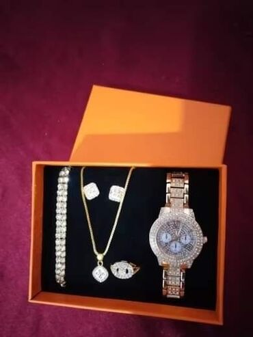 Uniseks ručni sat sa kvarcnim mehanizmom. Srebrne je boje, sa okruglim kućištem koje je ukrašeno detaljima nalik na cirkone oko brojčanika. Brojčanik je svetle boje, sa jasno označenim brojevima 12...