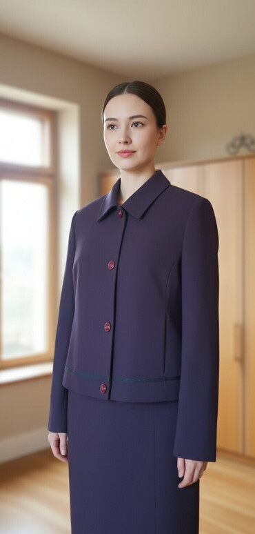 NovoKomplet, kostim NOV suknja ravna sanel duzina, pozadi sa malim slicem na preklop, blejzer ukrasen sa detaljima koze, boja trula visnja, mesoviti sastav, iz Italije, prelep, vrlo kvalitetan, postavljen, br. 40-42. Skupocen!
