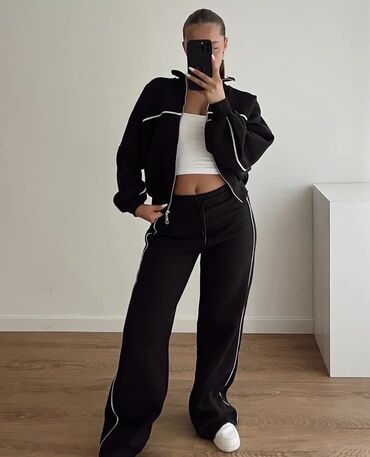 Crni dvodelni sportski komplet (dukserica + donji deo) - Materijal: mekana pamučna trenerka sa dodatkom elastina za udobnost i slobodu pokreta - Dizajn: crna osnova sa tri bele pruge duž rukava i ...3 000 RSD