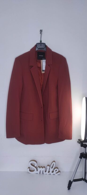 - Sako VERO MODA u terakota/rum crvenoj nijansi: klasičan rever, jednoredno kopčanje sa dva dugmeta, dva spoljašnja džepa sa klapnama, glatka postava za prijatno nošenje.