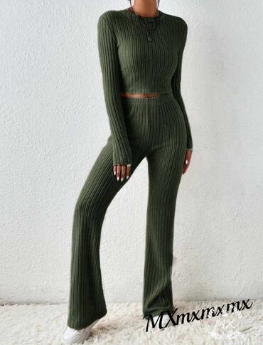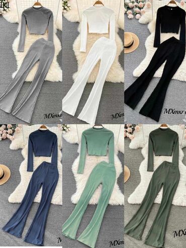 💫Ženski komplet – asimetrična bluzica i široke pantalone ✅Cena