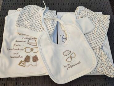 Bebi komplet odeće – svečane kombinacije 1) Pepco Baby košulja + pleteni prsluk - Brend: Pepco Baby (etiketa prisutna) - Bela košulja dugih rukava sa klasičnom kragnom - Rukavi sa dugmetom za podv...