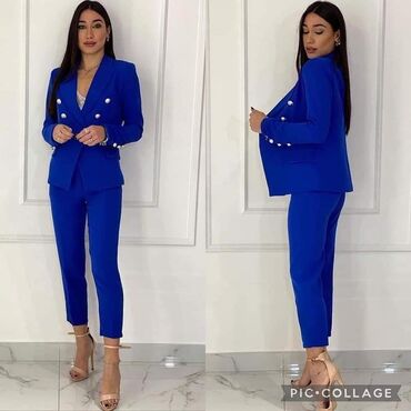 Poslovni komplet Barbosa Komplet sako i suknja, veličina 38. Boja teget Dimenzije sakoa - Širina ramena 41cm - Dužina leđa 65cm - Obim grudi 92cm - Dužina rukava 62c...
