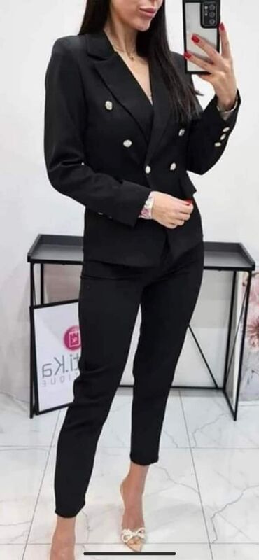 Ženski elegantni komplet – sako i pantalone - Model: dvoredni sako sa