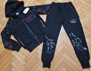 Paket oko 30 komada .Saljem snimak .Komplet dečijih dukseva i donjeg dela trenerke - Crni duks sa kapuljačom: minimalistički dizajn, diskretni print natpisa na levoj strani i štep detalji; prakti...