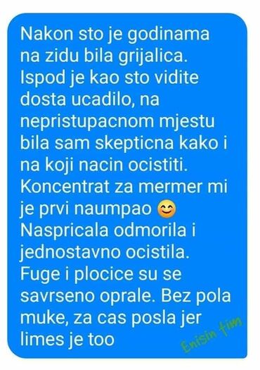 Specijalno sredstvo za čišćenje tvrdih podnih, zidnih, stepenišnih i drugih mermernih, keramičkih, betonskih i sličnih površina.