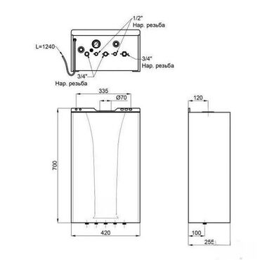 **Dodatne informacije :** Dimenzije (VxŠxD) : 700 x 420 x 262 mmTip kotla : KondenzacioniTip montaže : FasadniNamena kotla : Grejanje + Sanitarna vodaTip goriva : GasGrejna površina : 300-340 m² Cirkulaciona pumpa : DaEkspanziona posuda : DaDimenzije dimovoda : Ø60/100Boja : Bela
