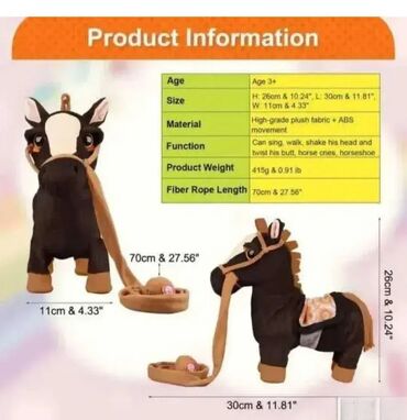 Funkcija: Konj šeta i mrda zadnjicom, uz zvuk potkovice i onomatopeju konja, stvarajući zabavnu i edukativnu igru za decu.