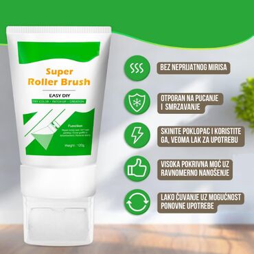 1. Prvo, upotrebite papirni ubrus ili krpu da biste uklonili nečistoće poput prašine i masnih mrlja sa zida. 2. Otvorite čep boce, istisnite boju i pređite valjkom po zidu. 3. Nakon upotrebe, ako pokrivenost nije savršena, sačekajte 3 minuta i ponovite nanošenje nekoliko puta kako biste postigli željeni efekat. 4. Četkicu lako možete skinuti radi čišćenja za narednu upotrebu.