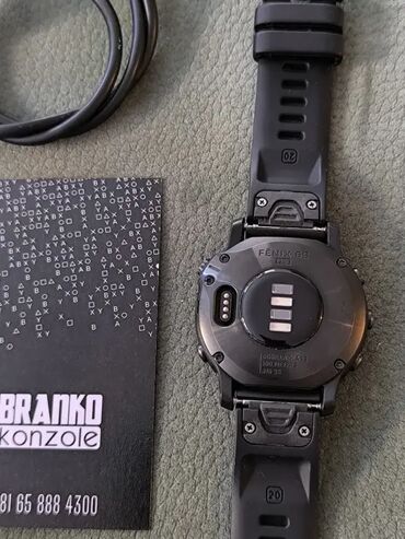 Korišćeno, očuvano. Ovi robusni multisport GPS pametni satovi iz serije fēnix omogućavaju vam da svojim vežbanjima dodate karte, muziku, funkciju pametnog planiranja tempa i još mnogo toga, tako da ćete biti u mogućnosti da se izborite sa bilo kojim izazovom. Senzori za merenje pulsa na zglobu i pulsnu oksimetriju daju vam uvid u vaše fitnes aktivnosti. Funkcija Dynamic PacePro™ pomaže vam da trčite pametnije na različitim vrstama terena. Prethodno učitane skijaške karte za više od 2000 skijališta širom sveta. Pratite karakteristike trčanja i vožnje bicikla na načine za koje niste ni znali da postoje. Krećite se svetom uz referentne podatke višestrukih GNSS satelita i senzora za upotrebu na otvorenom. Kvalitetan dizajn odlikuje se uvek uključenim 1,3-inčnim ekranom koji je 18 % veći od ekrana na prethodnim fēnix modelima. Sadrži okvir od nerđajućeg čelika ili okvir obložen DLC slojem i testiran je u skladu sa američkim vojnim standardima. Tehnologija PacePro. Sportske aplikacije. TopoActive Europe i skijaške karte. Senzor pulsa na zglobu. Senzor pulsnog oksimetra. Senzor energije Body Battery™. Connect IQ™ trgovine. Baterija omogućava trajanje do 14 dana u načinu rada pametnog sata, 10 h u GPS načinu rada sa reprodukcijom muzike i do 48 dana u načinu rada za uštedu baterije.