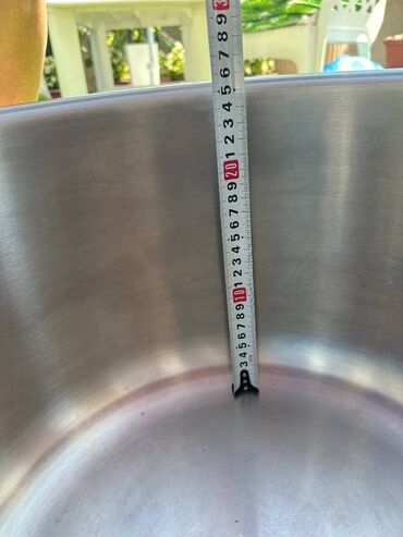 - Zapremina/format: vrlo dubok lonac, visina unutrašnjosti oko 20 cm (vidljivo na metru); širok prečnik – idealan za veće količine