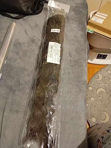 Perika sa šiškama – duga talasasta crna - Stil: duga, talasasta kosa sa ravnim šiškama - Boja: intenzivno crna - Dužina: do ispod grudi (otprilike 60–70 cm) - Tekstura: mekani, definisani talasi s...