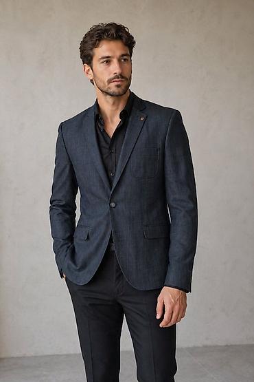 - Detalji: jednoredno kopčanje na jedno dugme, uski rever, gornji našiveni džep na grudima, dva džepa s klapnama, unutrašnji džepovi, diskretan stečeni izgled teksture