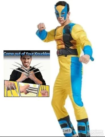 KOSTIM iz jednog dela sa mišićima + maska + kandže. maska i kandže su od plastike. Izmerite se od ramena do stopala pa cemo uporediti sa merama. Grudi 106 do 118cm, struk 94 do 110, duzina od ramena do obuće 158 cm. Imamo i za decu. Preko 400 vrsta kostima: NOVO Kostim za decu deciji kostimi za maskenbal, maskembal, maska maske za halloween noc vestica ili zurku, rodjendan. Ovaj artikal mozete poruciti na sledece nacine: 1) Porukom ovde na sajtu sa podacima za slanje i brojem telefona. 2) Pozivom na mobilni ili porukom SMS, Viber, Whatsapp u periodu. Trudimo se da odgovorimo i posaljemo artikal u kratkom roku. Pre slanja cemo obavezno jos jednom potvrditi detalje. Robu saljemo Post Expressom. Postarinu placa kupac prema cenovniku koji mozete videti na njihovom sajtu. Robu mozete preuzeti i licno na Novom Beogradu uz obavezan prethodni dogovor. Povracaj i reklamacije na robu u skladu sa Zakonom o zastiti potrosaca. BG BIKE ONLINE SHOP Beograd Maticni broj: 65560429 PIB: