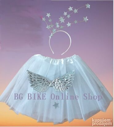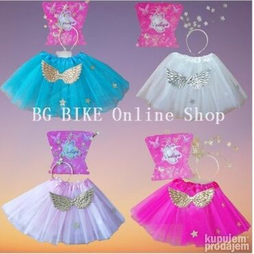 Kostimi tutu suknja sa krilima rajf zvezdice suknjica andjeoNOVO Kostim za decu maskenbal maskembal za devojcice, novi kostimiLeptir vila zvoncica andjeo princeza**u ponudi su kompleti u PLAVOJ, BELOJ, SVETLO ROZE i tamno roze tj ciklama** Kostim sadrzi> 1) suknjicu duzina 30cm, obim struka od 46 do 86cm2) rajf sa zvezdicamaSuknja za decu dečija dečija letnji Kostim vila krila andjeoNOVO Kostim za decu deciji kostimi za maskenbal, maskembal , maska maske za halloween noc vestica ili zurku**POGLEDAJTE OSTALE NASE OGLASE****> > > > > > > > > > > > > > > > > > > > > > > > > > > > > > > > > > > > > > > > > > > > > > > > > > > > > ****Ovaj artikal mozete poruciti na sledece nacine:****1) Porukom ovde na sajtu sa podacima za slanje i brojem telefona****2) Pozivom na mobilni ,****Porukom SMS, Viber, Whatsapp****(10-20h)** Trudimo se da odgovorimo i posaljemo artikal u kratkom roku. Pre slanja cemo obavezno jos jednom potvrditi detalje. **Robu saljemo Post Expressom.****Postarinu placa kupac prema cenovniku koji mozete videti na njihovom sajtu.****Robu mozete preuzeti i licno na Novom Beogradu uz obavezan prethodni dogovor.** Povracaj i reklamacije na robu u skladu sa Zakonom o zastiti potrosaca. BG BIKE ONLINE SHOPProfesora Vasica 80Vinca, BeogradMaticni broj: 65560429PIB: TR: 205--65