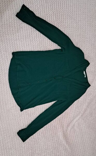 Ženska teksas košulja RE-DRESS, veličina S. - Klasičan kroj sa dugim rukavima - Kopčanje napred niz celu dužinu metalnim dugmićima u boji zlata - Okrugla kragna sa dezenom na sitne tufne (crn...