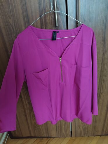 AMC ženska bluza sa dugim rukavima - Materijal: 100% viskoza (navedeno na etiketi) - Proizvedeno u Srbiji - Veličina: 40 - Dužina: 59 cm - Poluobim grudi: 49–57 cm - Cena: 1000 din (navedeno na sl...