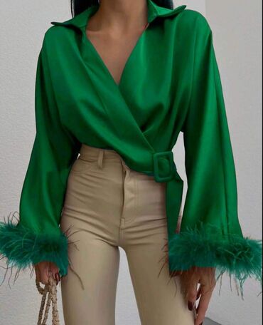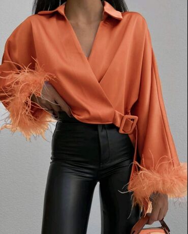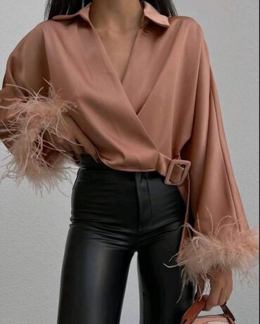 Ženska košulja u šampanj boji, dugi rukavi, klasično kopčanje napred. Kragna sa dekorativnom čipkom/vezenim detaljima daje elegantan izgled. Ravnog, komotnog kroja, blago zaobljen donji rub. Velič...