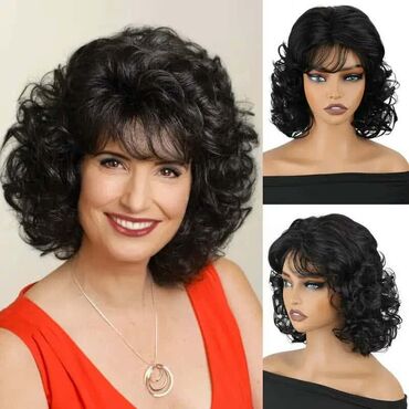Kovrdžava perika sa šiškama – crna, srednje dužine