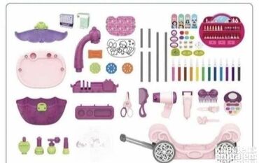 Sadržaj seta: Simulacijska mašina za sušenje veža, češalj, kopče, makaze i mnogi drugi dodaci