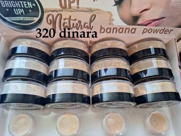 - Puder u prahu “Natural Banana Powder” – posvetljujući, za setovanje šminke i ujednačavanje tena. Cena: 320 dinara (po komadu, kako je naznačeno na slici).
