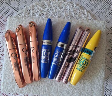 - Maskare: više modela i efekata – volumenske i vodootporne (plavo i žuto pakovanje “The Colossal Go Extreme!”, ružičasto metalik “Double Needs”, kao i zlatno-rosé GR). Idealne za intenzivan volumen i naglašene trepavice.