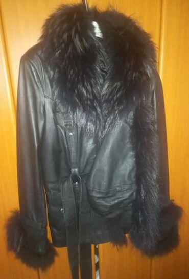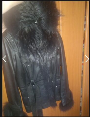Kožna jakna sa pravim krznom i kapuljačom koja se skida nova nošena par puta La Force Marka Vel L širina ramena 42Dižina jakne 75 cm