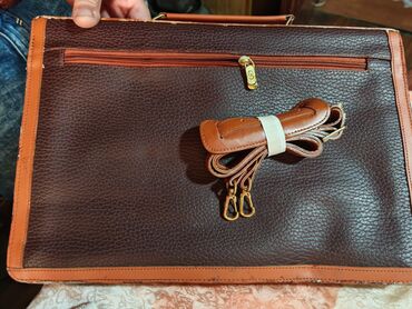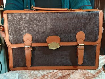 Kožna poslovna akt-tašna, tamno braon sa konjak-randovima.