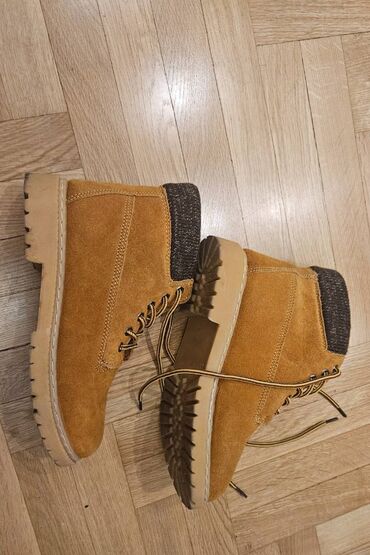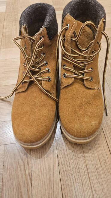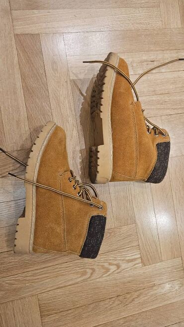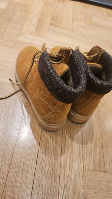 Narandžaste chukka cipele sa krznastom teksturom,od kamilje dlake. - Model: desert/chukka gležnjače na pertlanje - Brend/oznaka na đonu: Clarks x Zara - Veličina: 39 (otisnuto na đonu) - Gornjište...