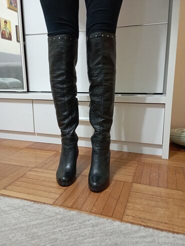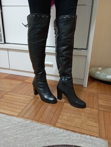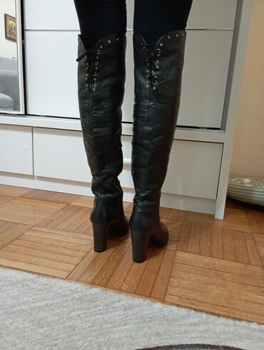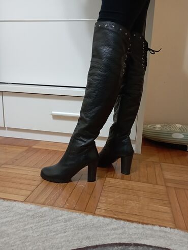O trošku kupcaKozne cizme Italijanske br 38. Postavljene, jako udobne, visina stikle je 9 cm. Ocuvane, visina iznad kolena .