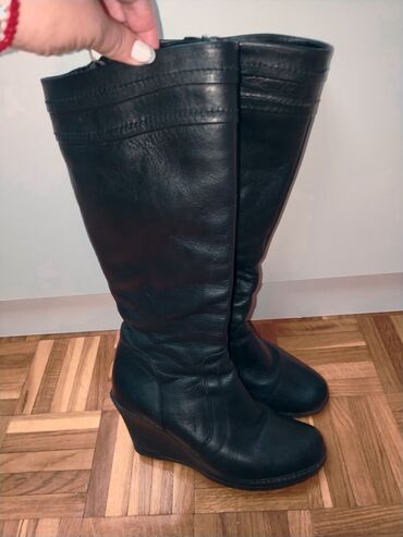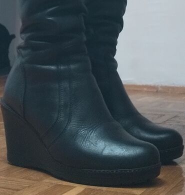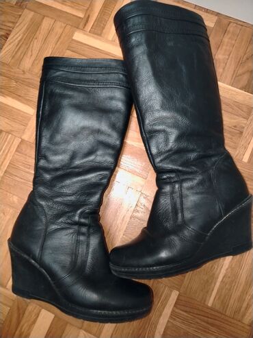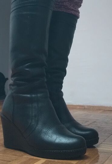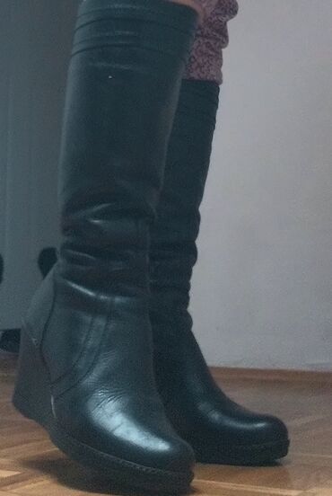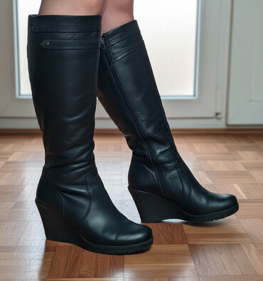 Kožne ženske čizme – broj 39 - Materijal: prava koža, glatka završnica - Boja: crna - Visoka platforma/deblji đon sa grubim profilom za stabilnost - Zatvaranje: bočni rajsferšlus za lako obuvanje ...