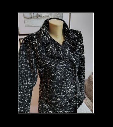 Ženski crni kaput/blejzer – CityRock, veličina L. - Model: kraći dvoredni kaput sa širokim reverima - Zakopčavanje: duplo kopčanje na dugmad - Pojas: širok, sa metalnom kopčom, provučen kroz paspu...