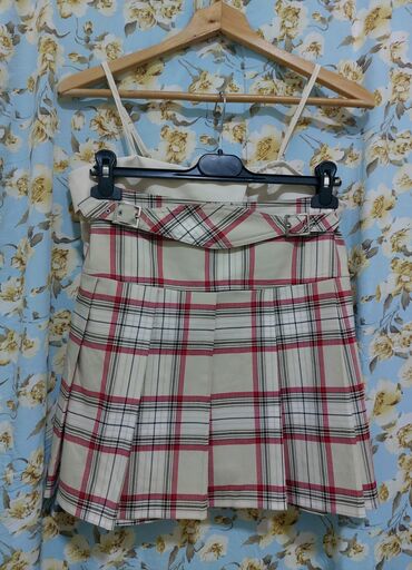 Drugi materijalKrem komplet za M. Karirana suknja ●Street One● naznačeno 38, struk po. 40cm, kuk po. 48cm, bok po. 55cm, dužina 42cm. Kvalitetna, postavljena i krem bluza na bretele ●Shein● 38, po. grudi 45cm, dužina sa bretelama 45cm. Cena 1000 dinara. ♡