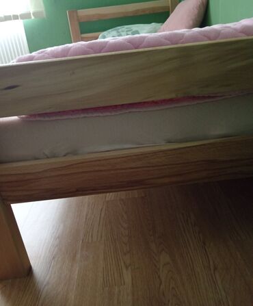 Sa drvenom osnovomKrevet samac sa dusekom, koriscen je 10 tak dana. Kupili smo krevete na sprat i sada nam je visak.