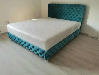 Tapacirani bračni krevet sa mehanizmom za podizanje i velikim prostorom za odlaganje. - Dimenzije ležaja: približno bračni (vidljivo širok, standardne proporcije) - Konstrukcija: čvrsta baza sa ...