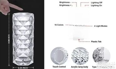 🌈 Gornji deo lampe pri dodiru menja boje osvetljenja, kao što je prikazano na slikama.