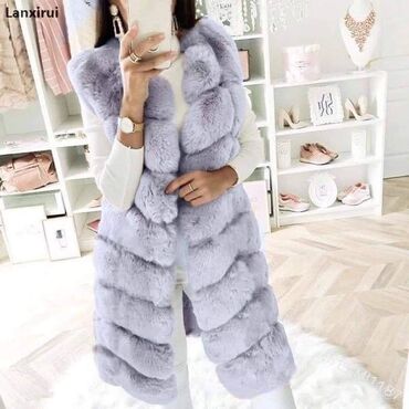 S /M M/L Prsluk od veštačkog krzna bez rukava, sa naglašenim kragnom/okovratnikom i pojasom za vezivanje u struku. Mekana, bogata tekstura krzna pruža efektnu siluetu i dodatnu toplinu. Unutrašnjos...