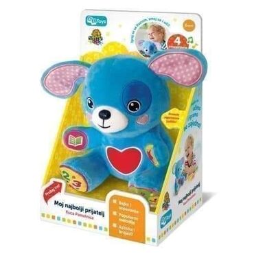 Ovo je plišana kuca koja priča bajke, peva poznate dečije pesmice i uči decu prvim slovima. Uz plišanu Kucu Pametnicu malisanima nikad nece dosadno!