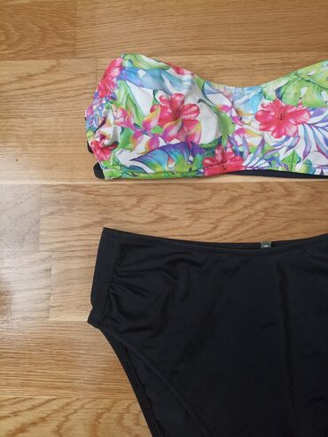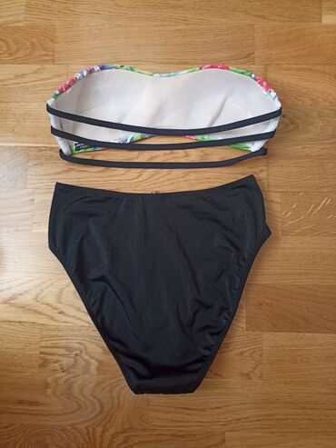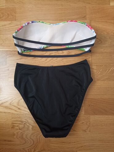 Nov kupaći kostim, zanimljiv, atraktivan. Iznutra na beloj postavi,gde se vade jastučići, zakačena je jedna mala nit noktom. Veličina je L.