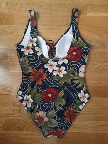Nov kupaći kostim, zanimljiv, atraktivan. Iznutra na beloj postavi,gde se vade jastučići, zakačena je jedna mala nit noktom. Veličina je L.2 000 RSD