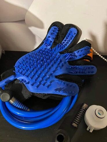 Specijalna rukavica sa crevom za kupanje ljubimaca koja na sredini ima prskalice sa silikonskim kuglicama i koja se fiksira za vaš dlan.