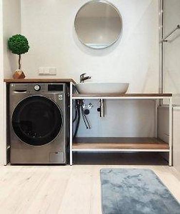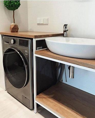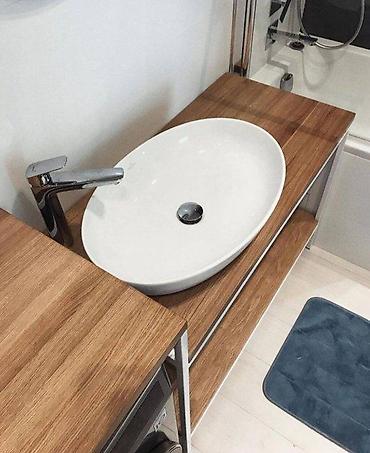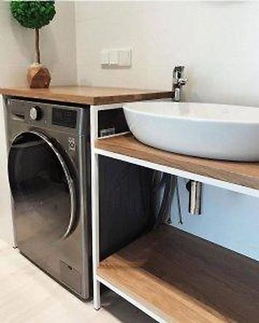 Bela kupatilska ormarić-kolica sa dve krilne vrata i ručkama od metala. Gornji deo je oblikovan za ugradnju umivaonika (izrez sa podignutim bočnim stranama). Ormarić stoji na četiri nogice, što ola...