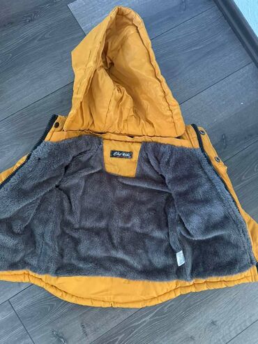 Dečija zimska jakna - Veličina: 104 cm, za uzrast 3–4 godine (oznaka na etiketi) - Boja: svetložuta - Model: punjena, prošivena jakna sa kapuljačom - Kopčanje: rajsferšlus celom dužinom - Rukavi i...