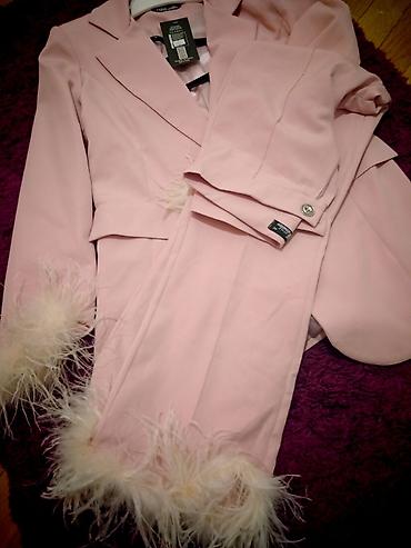 Elegantni ženski komplet – tunika bez rukava + široke pantalone - Kroj: tunika sa V-izrezom i preklopom, blago asimetričnog peplum efekta; pantalone ravnog, vrlo širokog („palazzo“) kroja za leprš...
