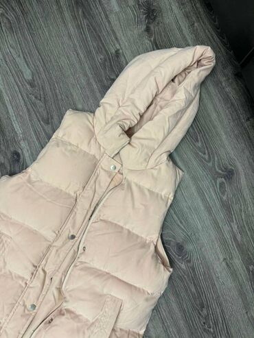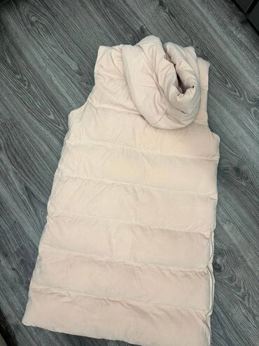 Drugi materijalDugački MATOGLA deblji zimski prsluk sa kapuljačom, L veličine. Ima jednu malu rupicu dole, slikano je. Dužina prsluka od ispod kapuljače do dole 95/96 cm. Ima zipove sa obe strane kao na slici, boja je neka bebiroze.