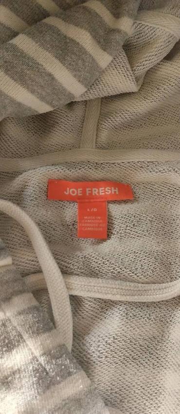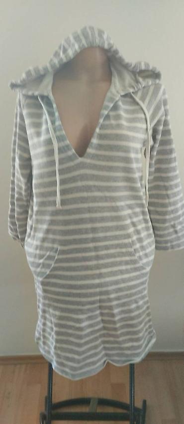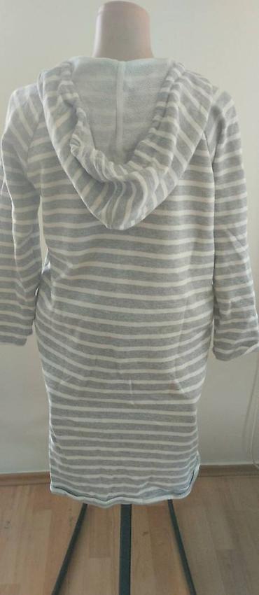 Tunika JOE FRESH, belo - sive boje vel L. Sastav 60 posto pamuk i 40 posto poliester. Rukavi idu od vrata. Napred ima džep. Sa strane imaju prorezi. Nazad je duža. Mere su bez rastezanja