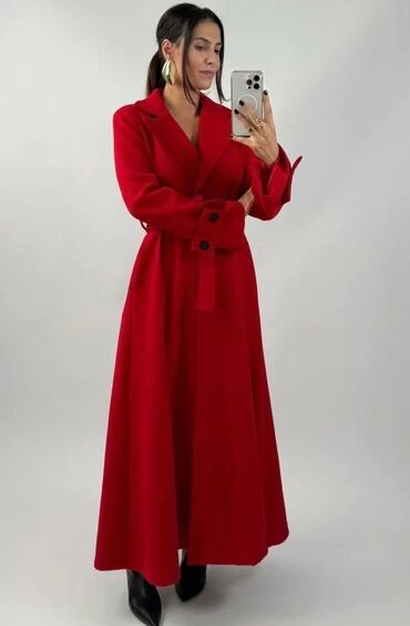 Ženski crveni kaput sa crnim krznenim ovratnikom/šalom. - Model: elegantan, ravnog kroja, dužina do kolena - Boja: intenzivno crvena - Detalji: veliki crni krzneni dodatak preko ramena i grudi (mo...